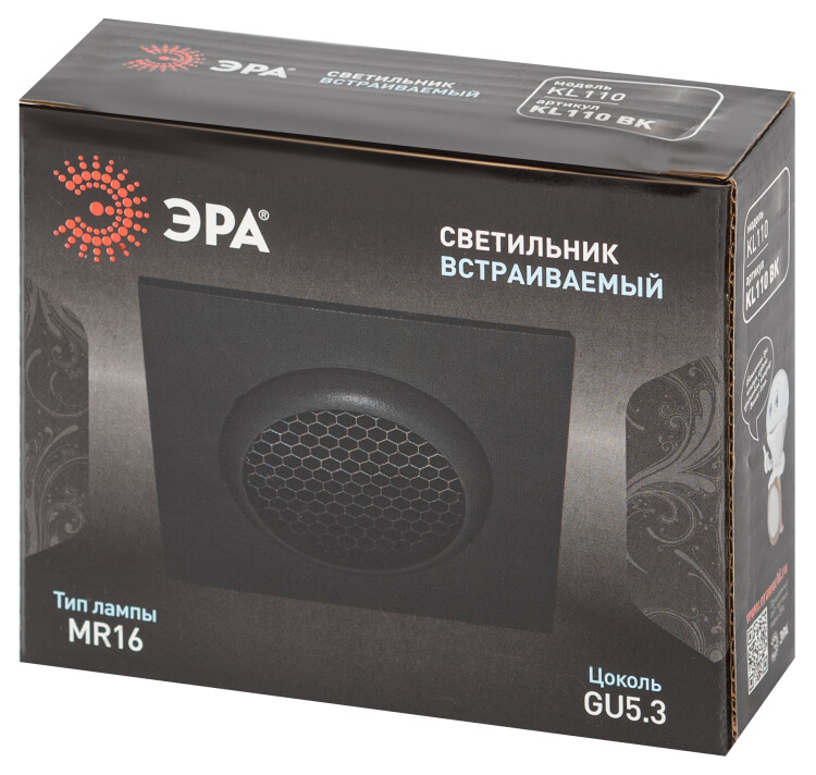 Встраиваемый светильник алюминиевый ЭРА KL110 BK MR16 GU5.3 черный матовый