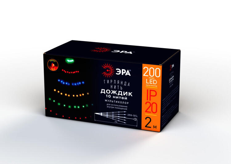 ENIN -2NM ЭРА Гирлянда LED Дождик 10 нитей 2 метра мультиколор 220V (60/1440)