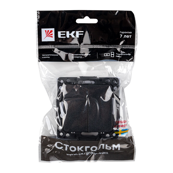 Стокгольм Механизм Выключателя 2-кл. 10А автоматические клеммы черный EKF PROxima