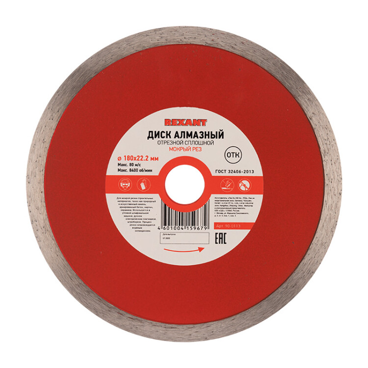 Диск алмазный, сплошной, 180х25,4/22,2х1,8 мм