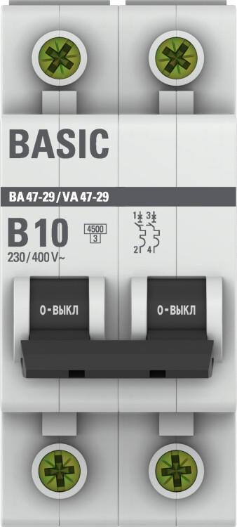 Автоматический выключатель 2P 10А (B) 4,5кА ВА 47-29 Basic