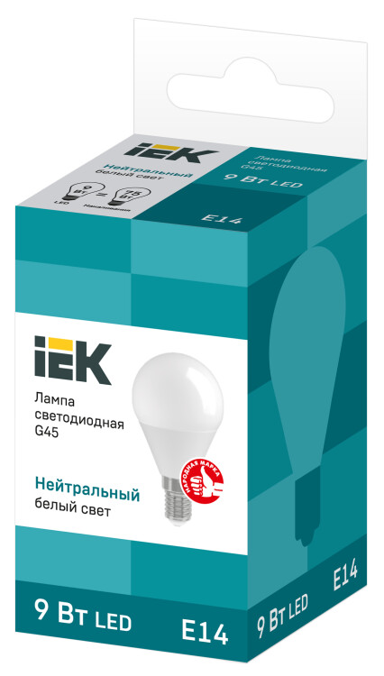 Лампа светодиодная G45 шар 9Вт 230В 4000К E14 IEK