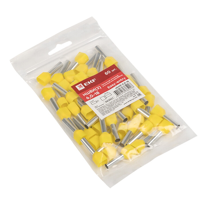 Наконечник-гильза втулочный 6мм? медь желтый луженый изолированный EKF
