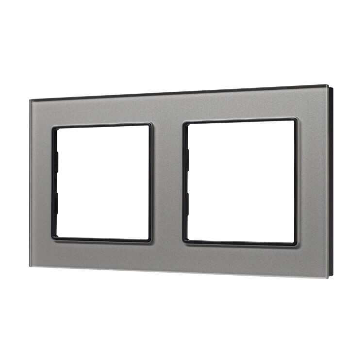 Рамка 2 поста стекло серое (квадрат) FRM-GLARE-GS-2-GR GLARE Arlight