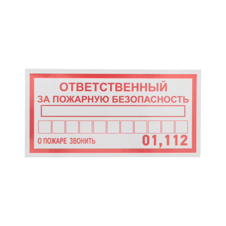 Наклейка информационный знак "Ответственный за пожарную безопасность" 100x200 мм REXANT