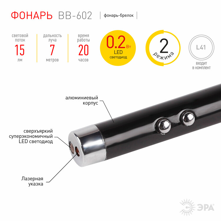 Фонарь брелок 0,2Вт 15Лм/м IP20 1хLR41 + лазерная указка алюм бат в компл BB-602
