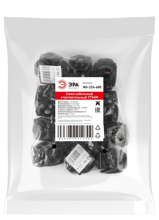 Сжим ответвительный ЭРА NO-224-680 кабельный У734М (16-35/16-25 мм2) IP20