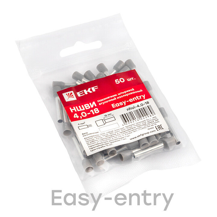 Наконечник-гильза втулочный 4мм? медь серый луженый изолированный EKF