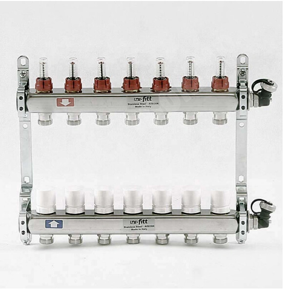 Коллекторная группа нерж.1"х3/4 на 7 вых.с расход.терморег.вентилями