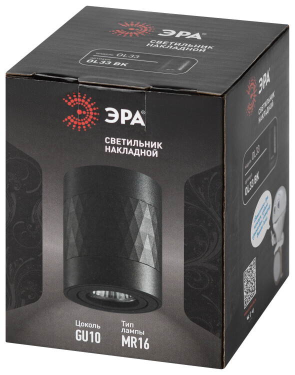 Светильник настенно-потолочный спот ЭРА OL33 BK MR16 GU10 IP20 черный