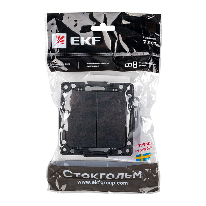Стокгольм Механизм Выключателя 2-кл. проходного 10А автоматические клеммы черный EKF PROxima