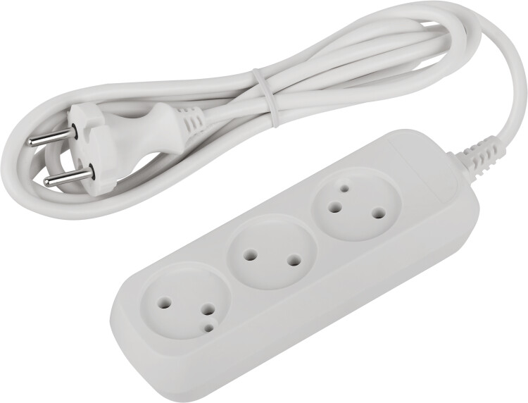 Удлинитель, 3 розетки, длина 1,5 м, 10А, ПВС 2х0,75 мм², б/з, IP20, термопласт, белый, У3