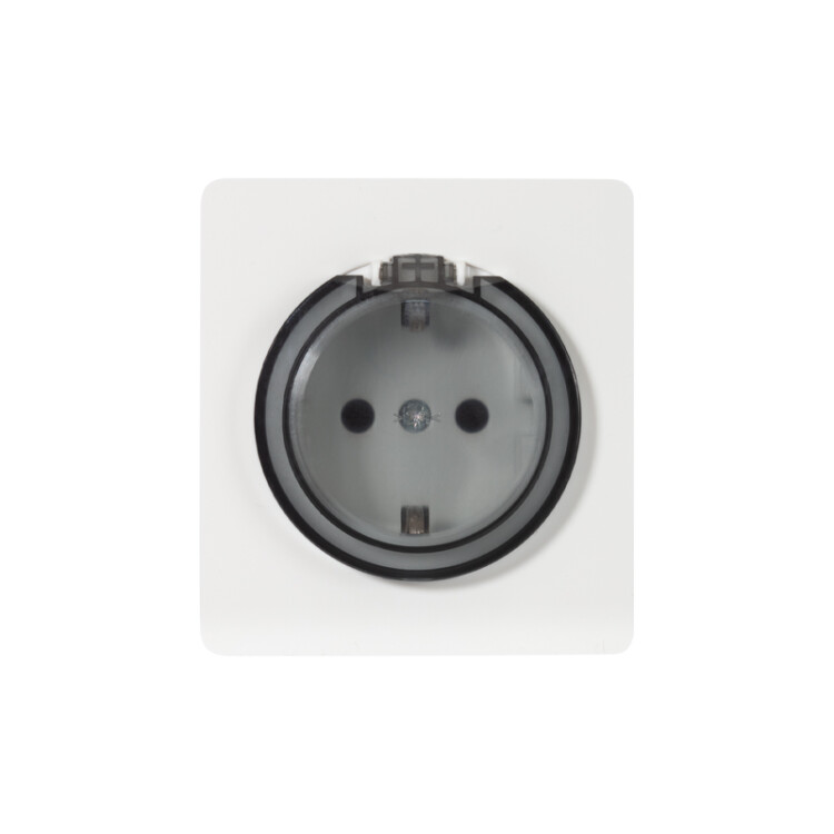 Розетка 2P+E со шторками и крышкой 16А перламутр ROUND KRANZ