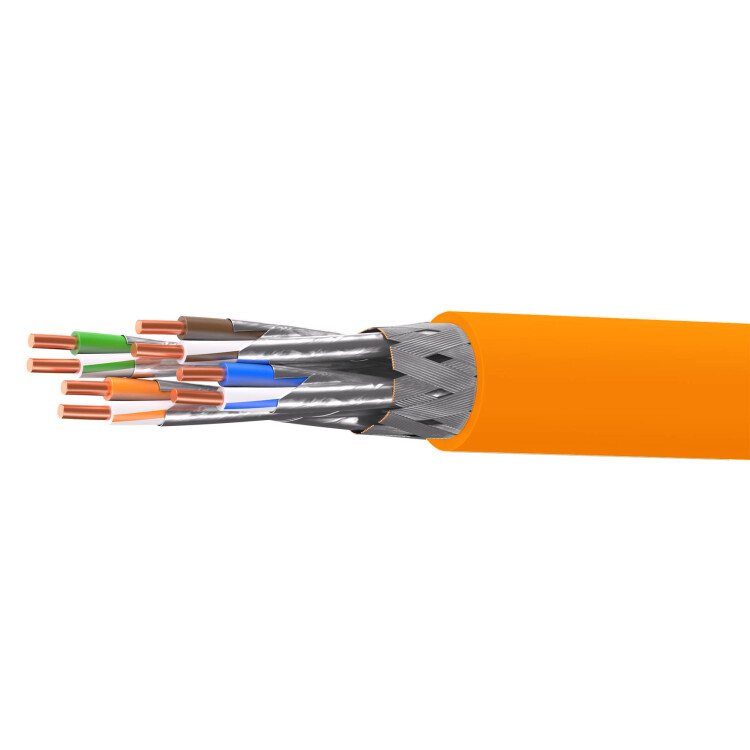 Кабель витая пара кат. 6А экранированный S/FTP, 4 пары, нг(А)-HF, цвет внешней оболочки оранжевый, бухта 500 м