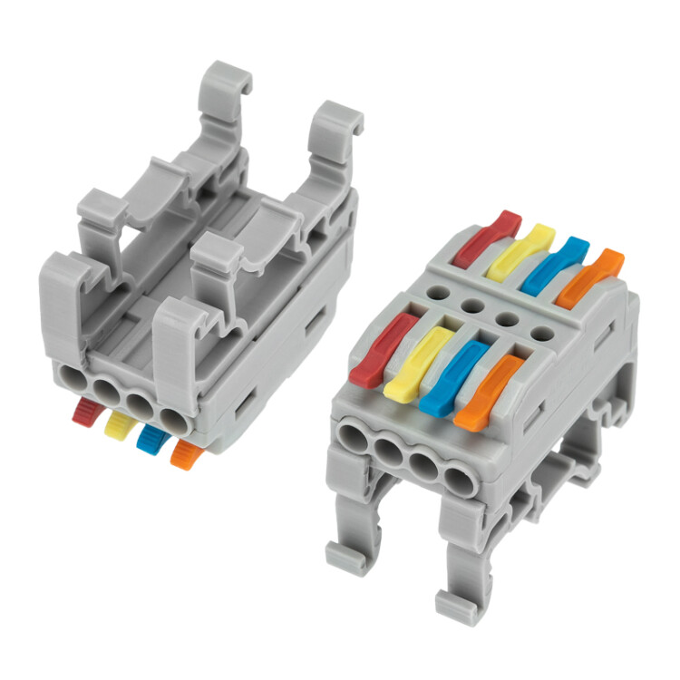 Клемма СМК 222-424D проxодная 4-полюсная, с креплением на DIN-рейку (0,08-4 мм²), серая (4 шт./уп.) REXANT