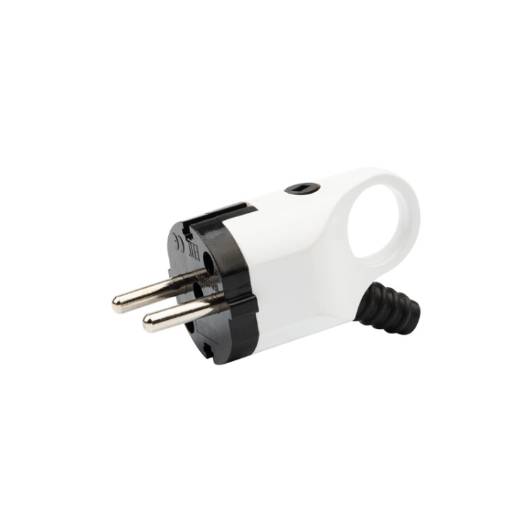 Вилка кабельная с боковым вводом, пластик, IP20, 16А, с/з, бело-черная, с кольцом, евро