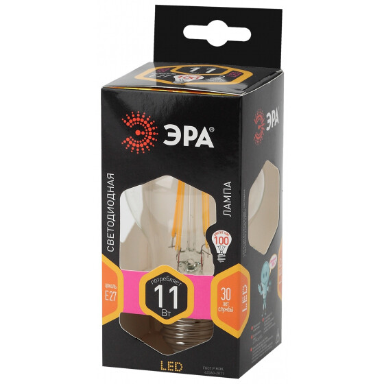 Лампочка светодиодная ЭРА F-LED A60-11W-827-E27 Е27 / Е27 11Вт филамент груша теплый белый свет