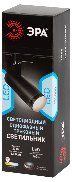 Трековый светильник однофазный ЭРА TR59 - 2030 BK светодиодный 20Вт 3000К черный