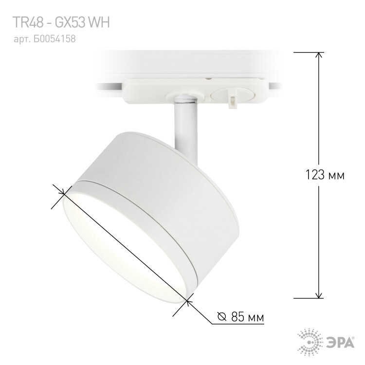 Трековый светильник однофазный ЭРА TR48 - GX53 WH под лампу GX53 матовый белый