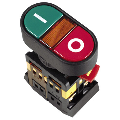 Кнопка управления "I-0" неон/230В d22мм 1з+1р IP40 тип APBB-22N