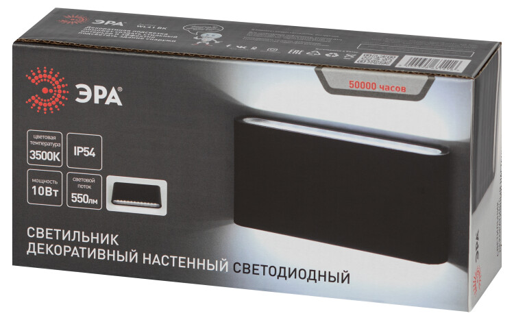 Декоративная подсветка ЭРА WL41 BK светодиодная 10Вт 3500К черный IP54 для интерьера, фасадов зданий