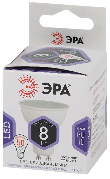 Лампочка светодиодная ЭРА STD LED MR16-8W-860-GU10 GU10 8Вт софит холодный дневной свет