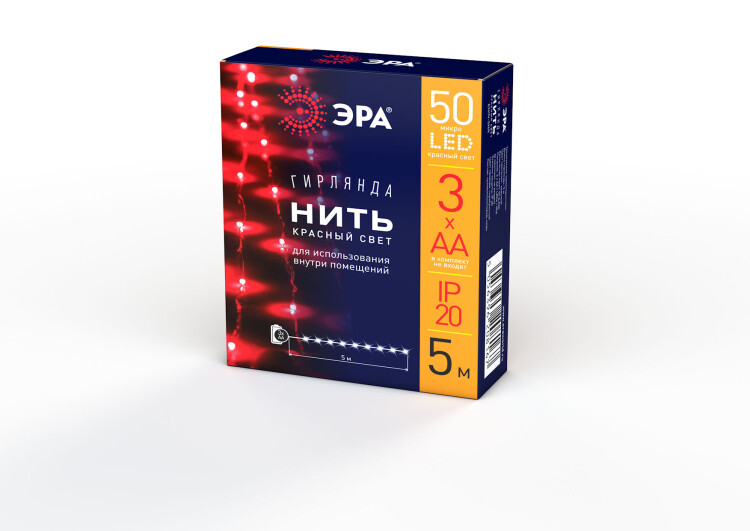 ENIN -5NR ЭРА Гирлянда LED Нить 5 м красный свет, АА (100/2500)