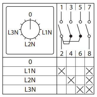 Переключатель кулачковый ПК-1-84 10А 4P для вольтметра (фазное напряжение) IP65 EKF