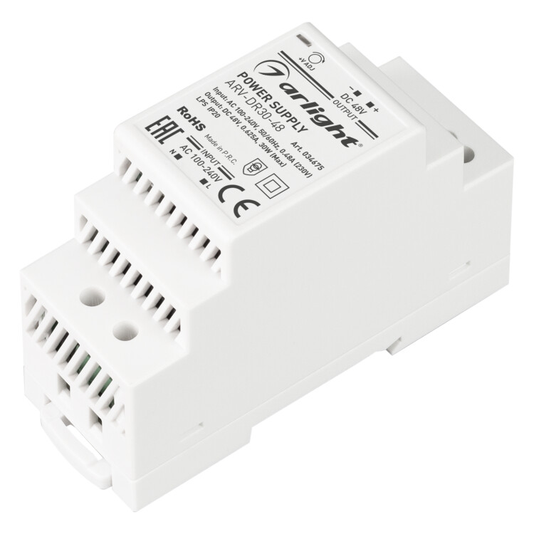 Блок питания ARV-DR30-48 (48V, 0.6A, 30W) (Arlight, IP20 DIN-рейка)