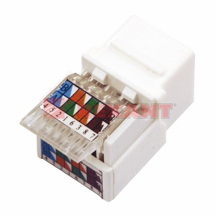 Модуль Keystone Jack RJ-45(8P8C), UTP, CAT 5e, тип 180 градусов, самозажимной, белый REXANT