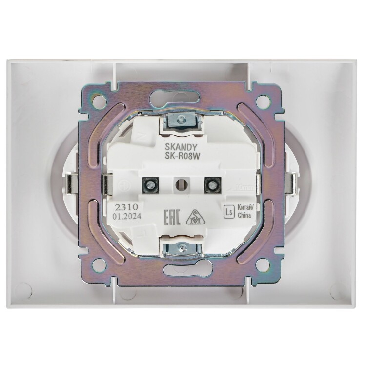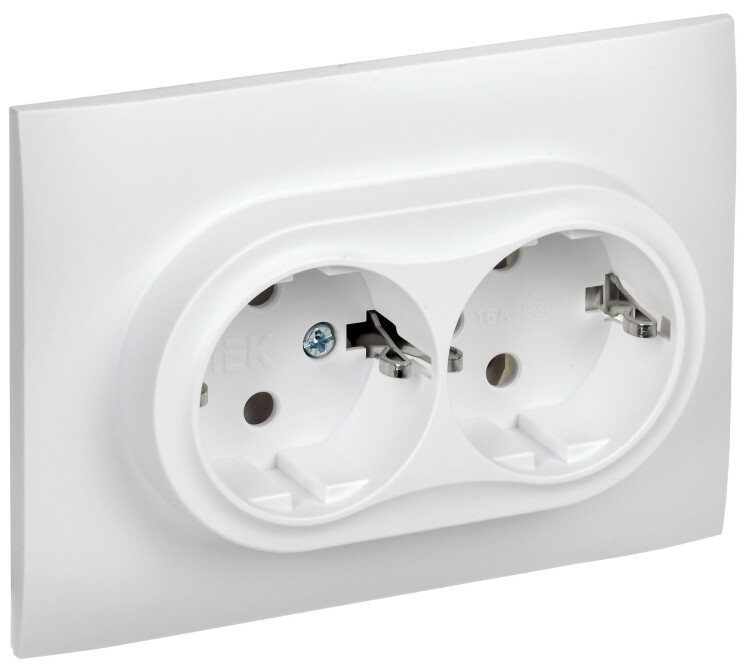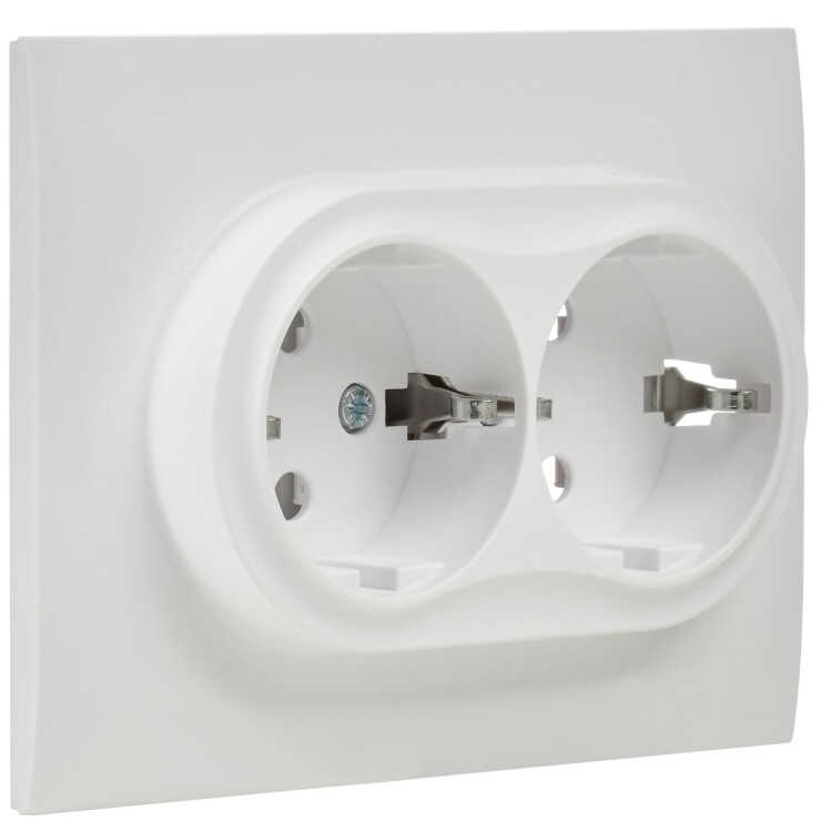 Розетка 2х2P+E 16А в сборе арктический белый SKANDY