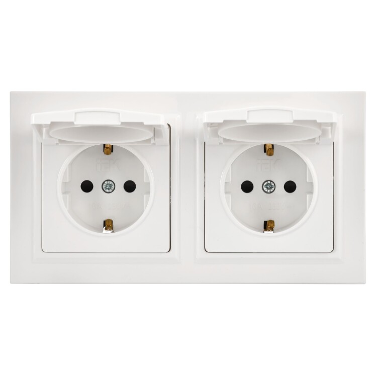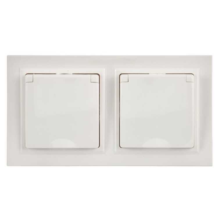 Комплект розетка 2P+2P+E со шторками с крышкой 16А IP44 2 штуки в сборе BRITE
