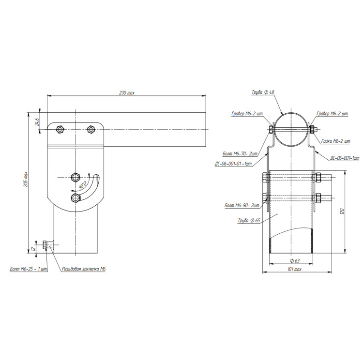 Кронштейн для уличного светильника ЭРА SPP-AC7-0-230-048 с переменным углом для торшерной установки in-d60mm out-d48mm