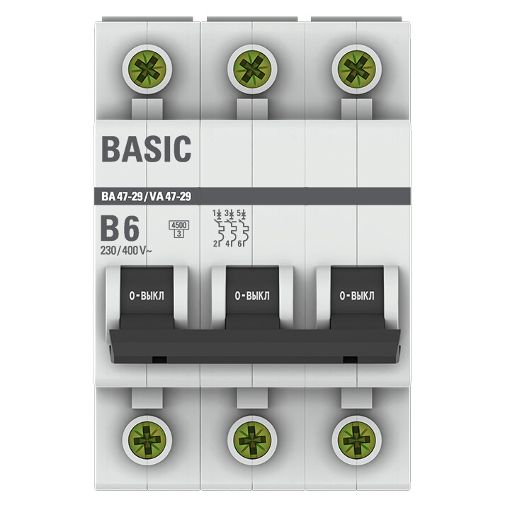 Автоматический выключатель 3P 6А (B) 4,5кА ВА 47-29 Basic