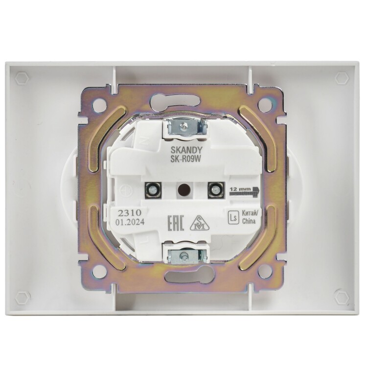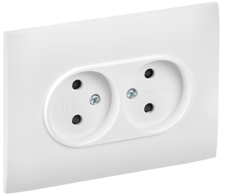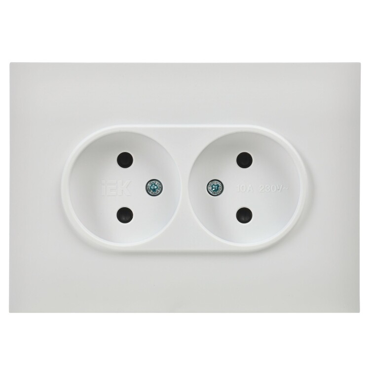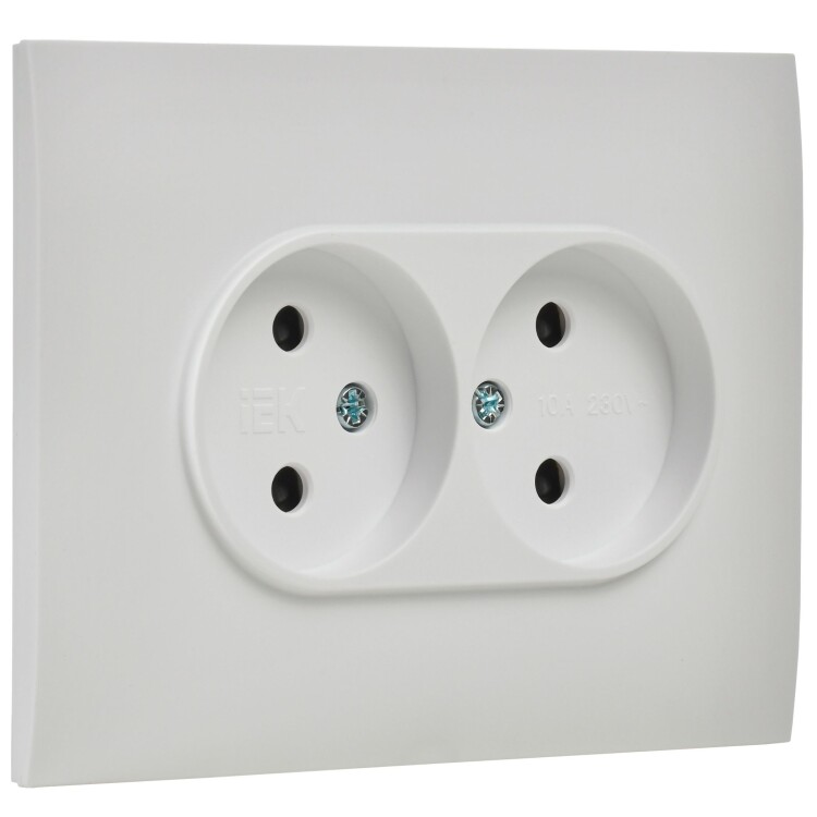 Розетка 2х2P с защитными шторками 10А в сборе арктический белый SKANDY