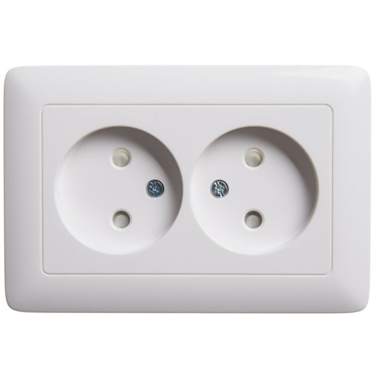 ХИТ С/У РОЗЕТКА двойная без заземления со шторками, 16А, БЕЛЫЙ. Россия