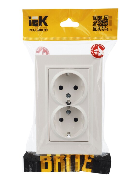 Розетка 2*2P+E с защитными шторками 16А в сборе РСш12-3-БрЖ жемчуг BRITE