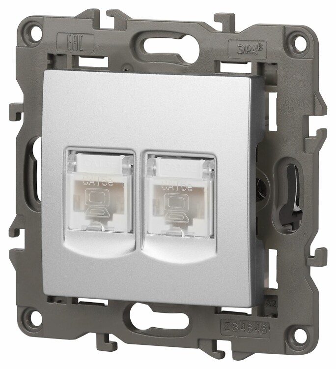 Розетка 2хRJ45 алюминий Elegance 14-3108-03