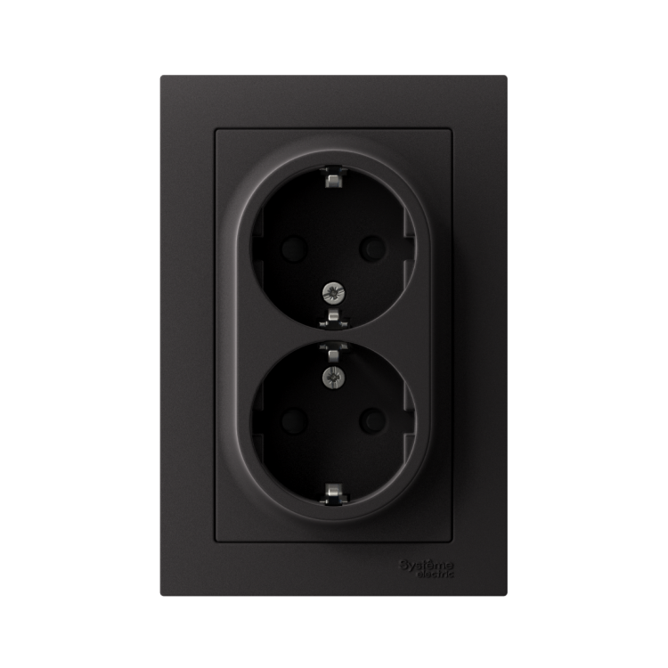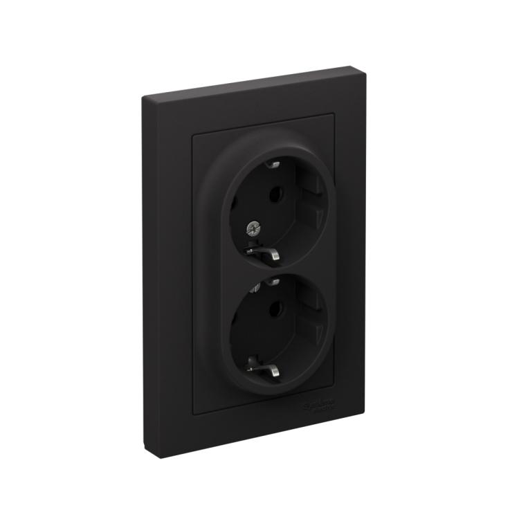 Розетка 2х2P+E со шторками в сборе 16А карбон AtlasDesign