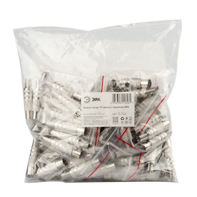 Разъем ЭРА гнездо TV c пружиной никель упаковка 100 шт.
