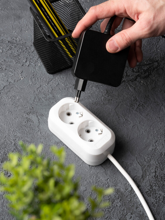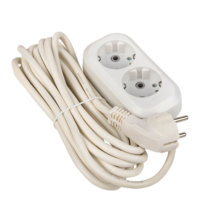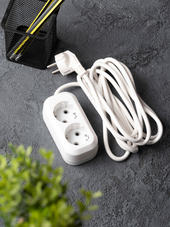 Удлинитель, 2 розетки, длина 5 м, 16А, ПВС3х1 мм², с/з, IP20, термопласт, белый, PROxima