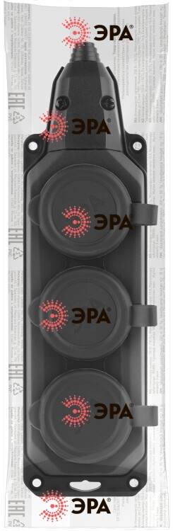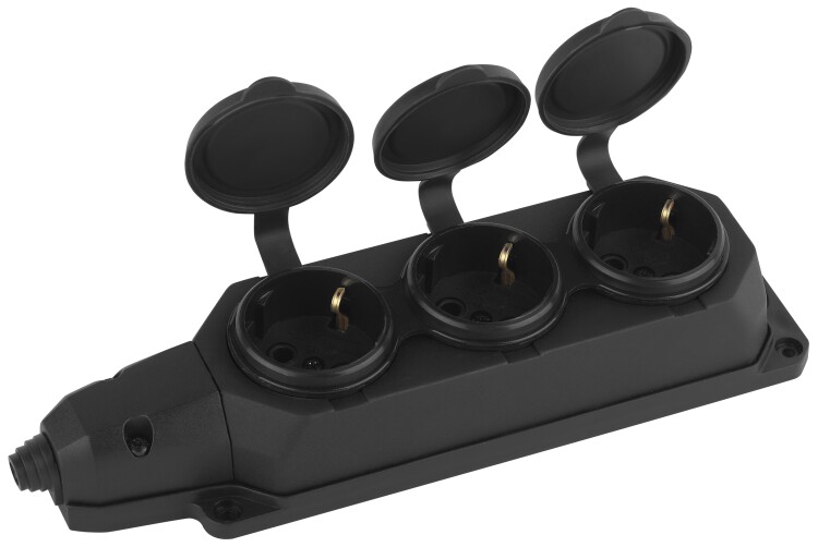 Колодка розеточная, 3 розетки, 16А, с/з, IP44, каучук, чёрная, K-3e-B-IP44