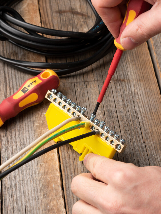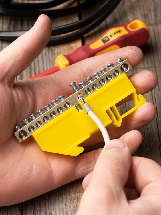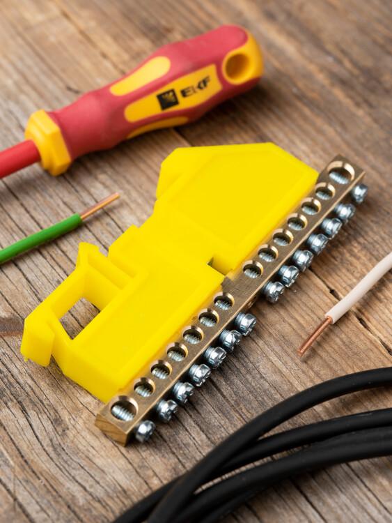 Шина PE "земля" 6х9мм 14 отв. желтый на DIN-рейку
