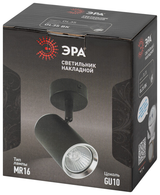 Светильник настенно-потолочный спот ЭРА OL35 BK MR16 GU10 IP20 черный, хром