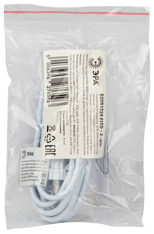 Кабель питания для линейного светильника ЭРА FITO - 2 -pin 1,5 м