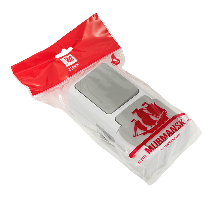 Мурманск Блок розетка 1-м 16А с заземлением с крышкой+ 1-кл выключатель IP54 серый EKF