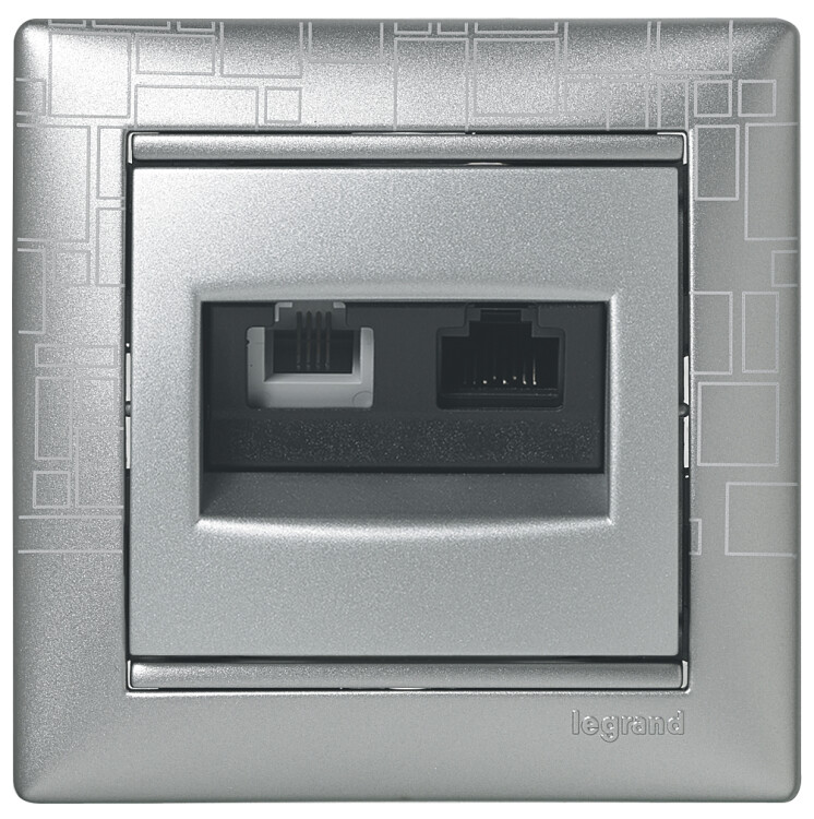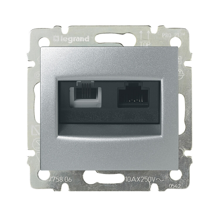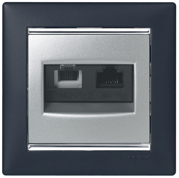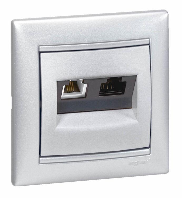 Розетка двойная телефон/компьютер RJ11+RJ45 алюминий Valena
