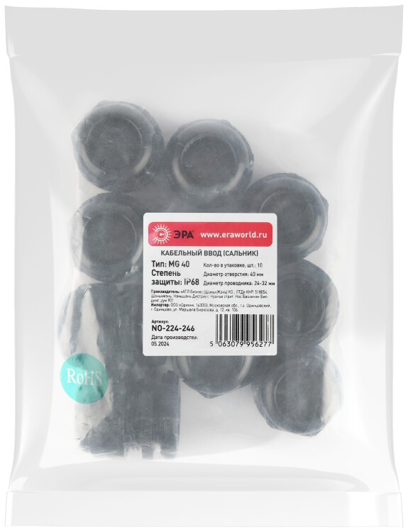 Кабельный ввод сальник ЭРА NO-224-246 MG 40 (d отв.40 мм / d провод.24-32 мм) IP68 (упаковка 10 штук)
