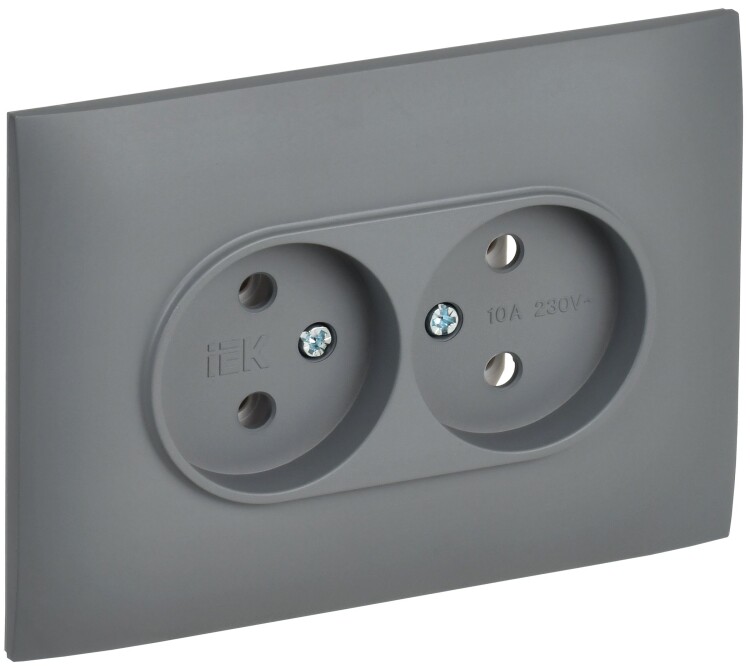 Розетка 2-местная без заземления без защитных шторок 10А в сборе SK-R10Gr серый SKANDY