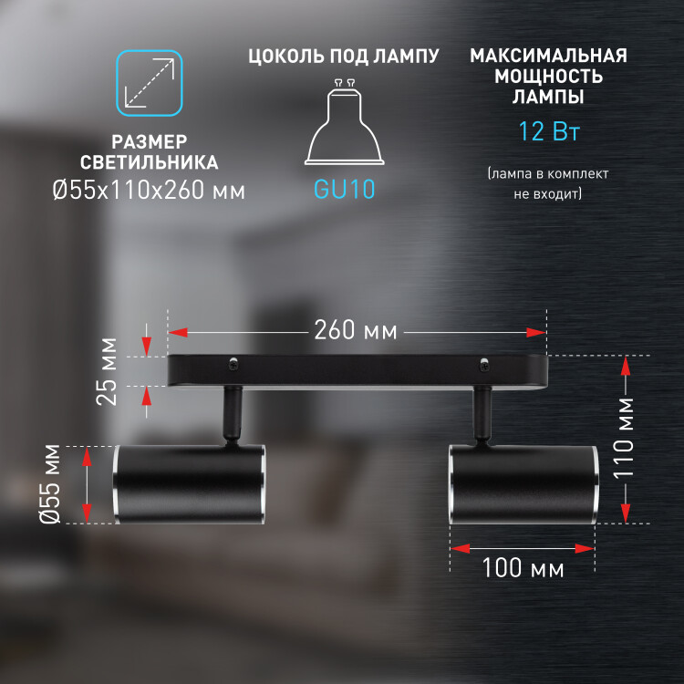 Светильник настенно-потолочный спот ЭРА OL35-2 BK MR16 GU10 IP20 черный хром